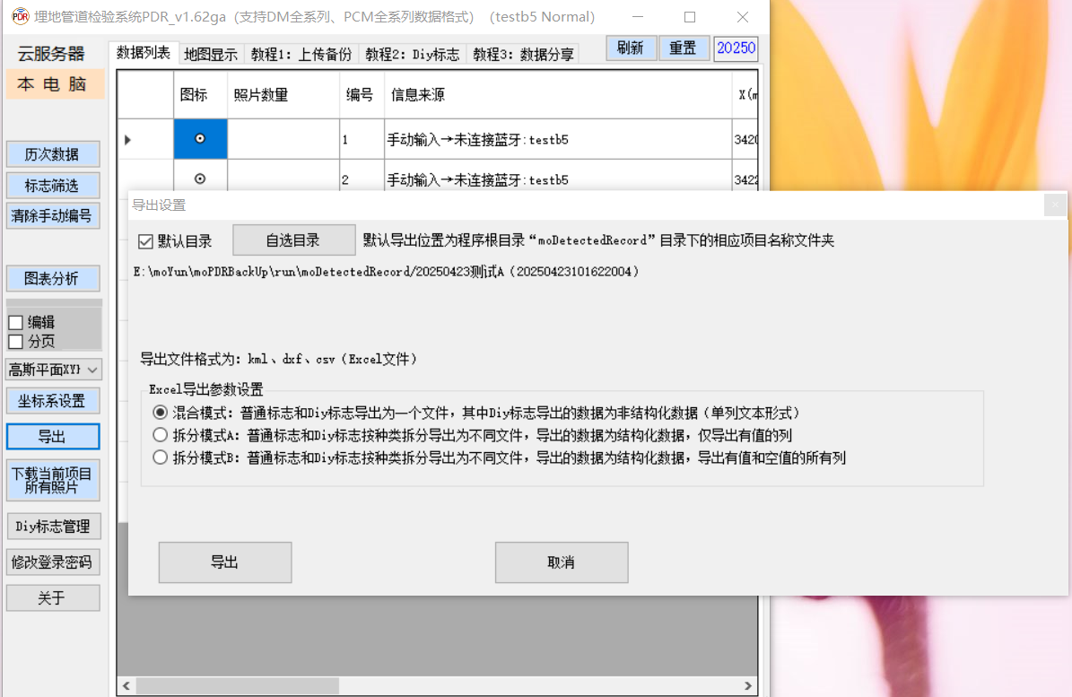 图2 数据导出 返回目录