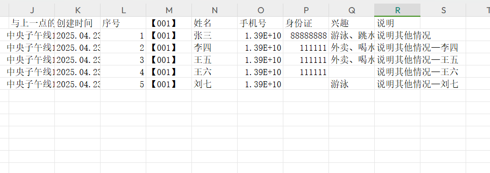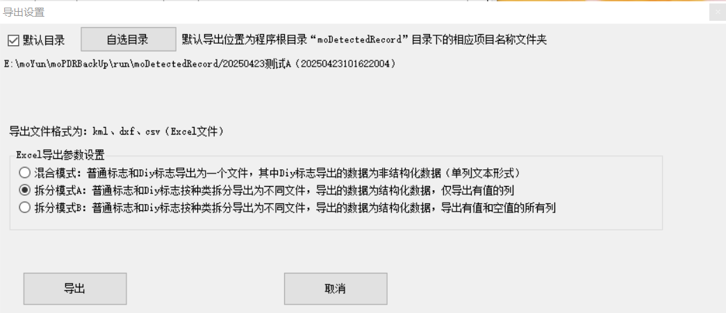 图5 拆分模式A:导出的数据为结构化数据,即1个输入项表示1列,无值的输入项不导出 返回目录
