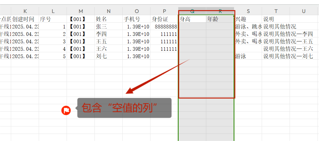 图10 拆分模式B - Excel文件内容形式(含“空值的列”) 返回目录